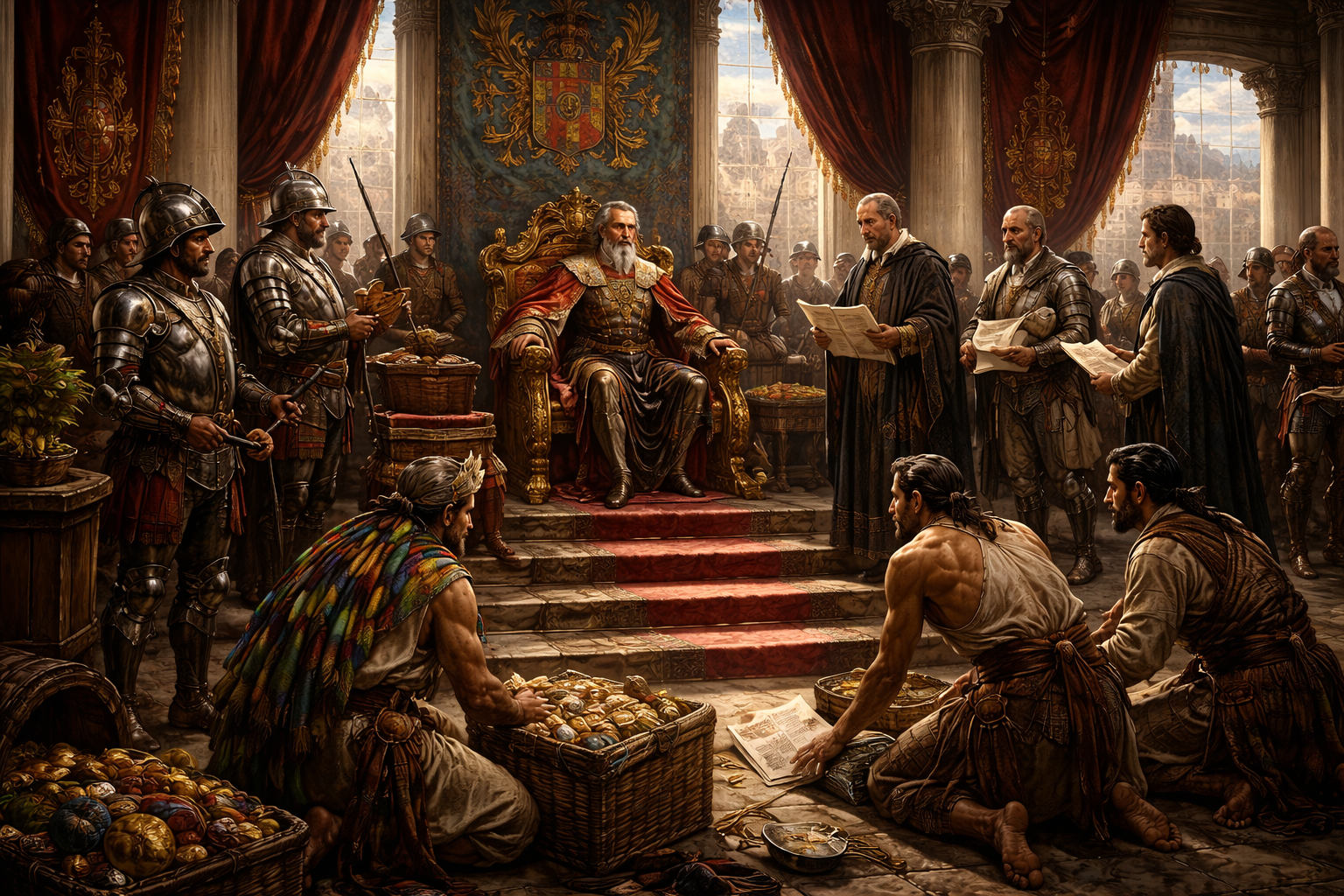 Die Geschichte Neuspanien beginnt mit der Eroberung von Mexiko-Tenochtitlán zwischen 1519 und 1521. Hernán Cortés, ein spanischer Konquistador, landete am 10. Juli 1519 an der Küste und gründete Villa Rica de la Vera Cruz, das erste städtische Zentrum auf dem amerikanischen Festland. Dort begann er, seine Truppen zu organisieren und Allianzen mit lokalen Völkern zu schmieden. Zu dieser Zeit herrschte in Tenochtitlán Moctezuma Xocoyotzin, der mächtige Herrscher der Mexica.